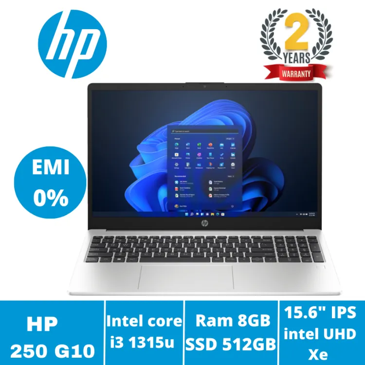 HP 250 G10 i3 (1315u) Laptop with 13th Gen 8GB RAM 512GB SSD 15.6" FHD IPS Backlight KB Silver and 2 Year Warranty